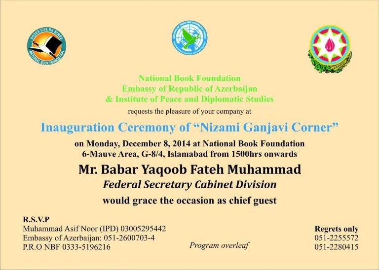 Inaugural Ceremony of Nizami Ganjavi Corner at National Book Foundation, Islamabad